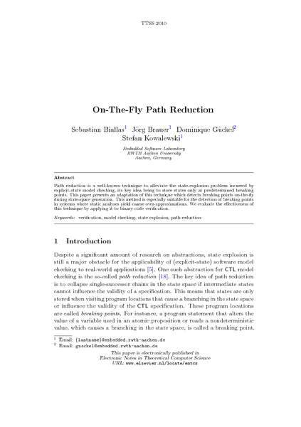 On-The-Fly Path Reduction