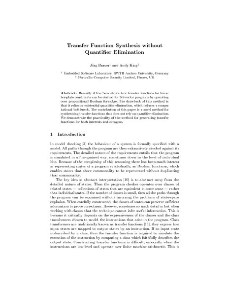 Recently it has been shown how transfer functions for linear template constraints can be derived for bit-vector programs by operating over propositional Boolean formulae. The drawback of this method is that it relies on existential quantifier elimination, which induces a computational bottleneck. The contribution of this paper is a novel method for synthesising transfer functions that does not rely on quantifier elimination. We demonstrate the practicality of the method for generating transfer functions for both intervals and octagons.