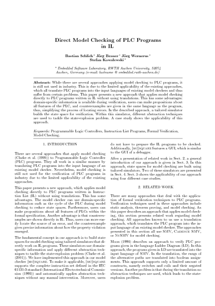 While there are several approaches applying model checking to PLC programs, it is still not used in industry. This is due to the limited applicability of the existing approaches, which all translate PLC programs into the input languages of existing model checkers and thus suffer from certain problems. This paper presents a new approach that applies model checking directly to PLC programs written in IL without using translations. This has some advantages: domain-specific information is available during verification, users can make propositions about all features of the PLC, and counterexamples are given in the same language as the program, thus, simplifying the process of locating errors. In the described approach, a tailored simulator builds the state space for verification. Within this simulator, different abstraction techniques are used to tackle the state-explosion problem. A case study shows the applicability of this approach.