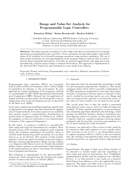 Range and Value-Set Analysis for Programmable Logic Controllers