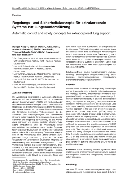 Die Anwendung extrakorporaler Lungenunterstützungsverfahren auf der Intensivstation ist bei schwerstem akutem Lungenversagen (ARDS) mit fortbestehender Hypoxie eine etablierte Therapie, obwohl der Einsatz von Regelungs- und Sicherheitskonzepten bisher höchstens ansatzweise realisiert ist. Ziel dieser Übersichtsarbeit ist die Darstellung technischer Verbesserungen, die die Sicherheit und Leistungsfähigkeit der verwendeten Systeme steigern und die Darstellung von Konzepten für Sicherheit und Regelung der Systeme, die die Anwendung optimieren und sicherer gestalten könnten. Technische Innovationen sind die Verwendung neuer plasmadichter Kompositemembranen in den Oxygenatoren und neuer Blutpumpen mit verlängerter Haltbarkeit und reduzierter Blutzellschädigung. Eine andere Möglichkeit ist die Verwendung einer arterio-venösen pumpenlosen Lungenunterstützung (pECLA), die einen Oxygenator mit vermindertem Druckabfall integriert, zur Vereinfachung des klinischen Managements und der Vermeidung Pumpen-bezogener Komplikationen. Erste Systeme für die dezidierte extrakorporale Membranoxygenierungs- Therapie (ECMO-Therapie) wurden mittlerweile entwickelt, um einfache Kontroll- und Sicherheitskonzepte in die ECMO zu integrieren. Diese sind aber immer noch nicht ausreichend, um die spezifischen Probleme der ECMO beim Langzeiteinsatz auf der Intensivstation zu lösen. Eine zuverlässigere Anwendung der ECMO auch ohne kontinuierliche überwachung durch einen Kardiotechniker erfordert beispielsweise automatisierte Kontroll- und Sicherheitskonzepte zusätzlich zu verbesserten ECMO-Systemen. Ein weiterer Vorteil wäre der vereinfachte Intra- und Interhospitaltransport von Patienten mit ECMO.