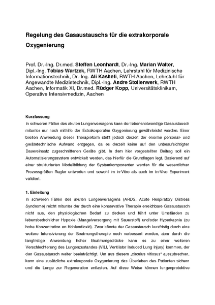 In schweren Fällen des akuten Lungenversagens kann der lebensnotwendige Gasaustausch mitunter nur noch mithilfe der Extrakorporalen Oxygenierung gewährleistet werden. Einer breiten Anwendung dieser Therapieform steht jedoch derzeit der enorme personal- und gerätetechnische Aufwand entgegen, da es derzeit keine auf den unbeaufsichtigten Dauereinsatz zugeschnittenen Geräte gibt. In dem hier vorgestellten Beitrag soll ein Automatisierungssystem entwickelt werden, das hierfür die Grundlagen legt. Basierend auf einer strukturierten Modellbildung der Systemkomponenten werden für die wesentlichen Prozessgrößen Regler entworfen und sowohl im in-Vitro als auch im in-Vivo Experiment validiert.