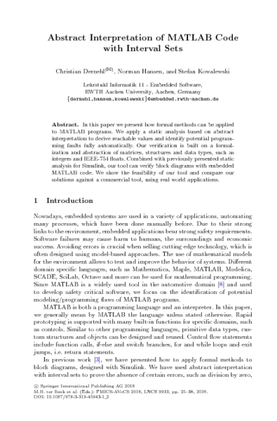 to MATLAB programs. We apply a static analysis based on abstract interpretation