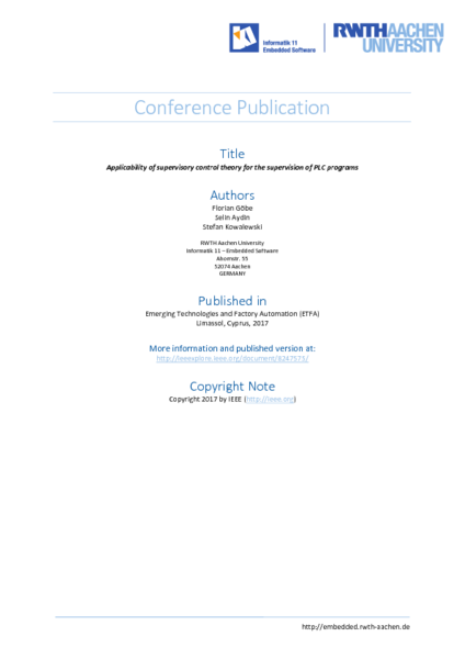 Applicability of supervisory control theory for the supervision of PLC programs