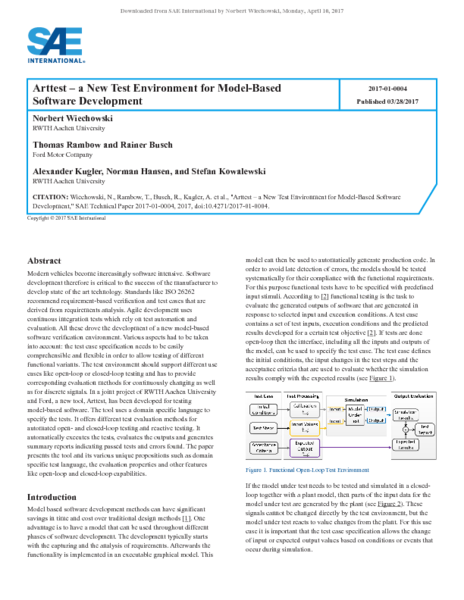 Arttest - a New Test Environment for Model-Based Software Development